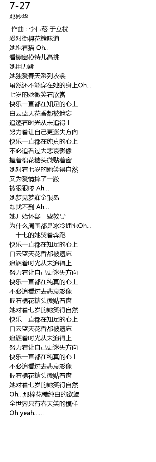 | [00:42.71] | 七岁的她微笑着欣赏 |