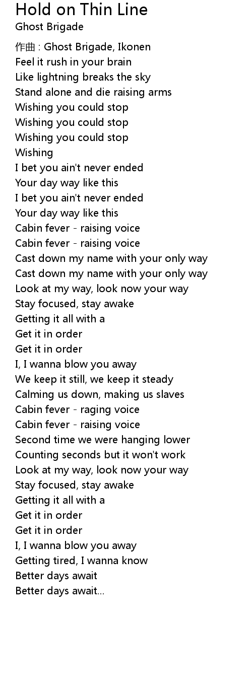 | Song | Hold on Thin Line |