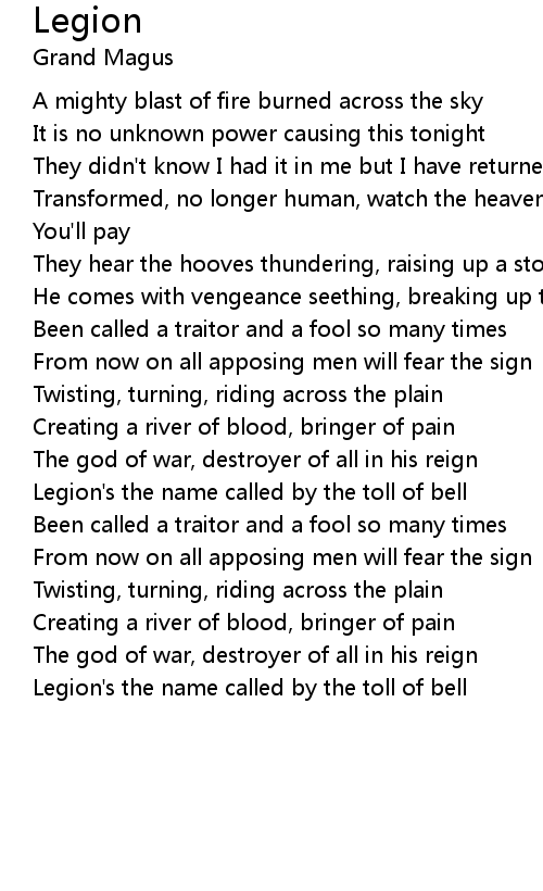 Legion's the name called by the toll of bell |