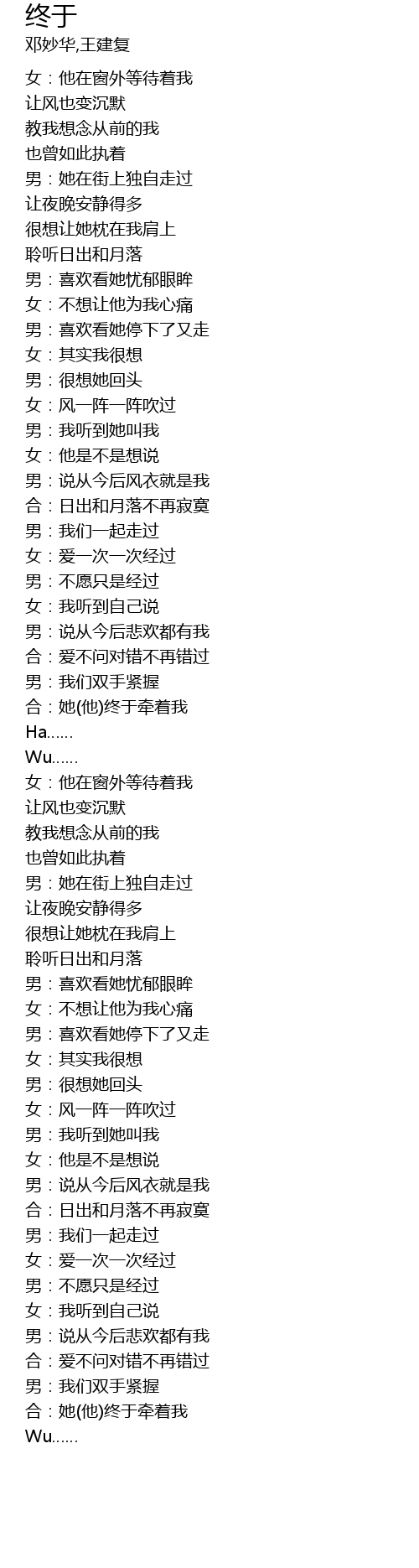 | [02:00.64] | 合:她(他)终于牵着我 |