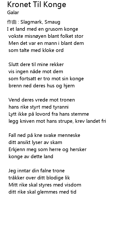 | Jeg inntar din falne trone | |