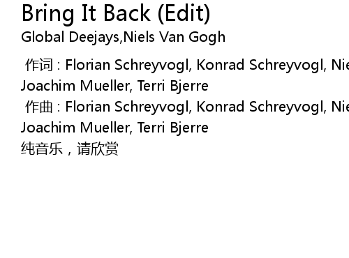 | [00:01.000] | zuo qu : Florian Schreyvogl, Konrad Schreyvogl, Niels van Gogh, Joachim Mueller, Terri Bjerre |
