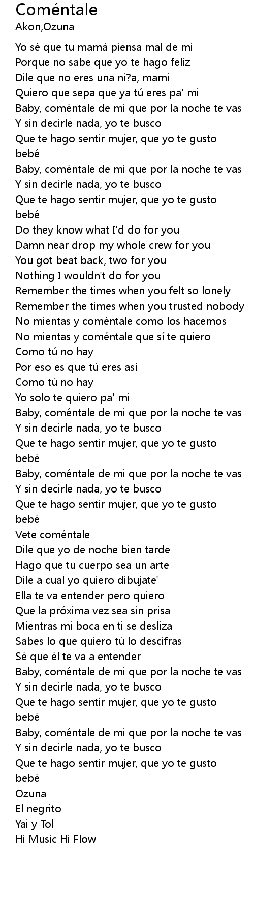 | [02:57.78] | Baby, comé ntale de mi que por la noche te vas |