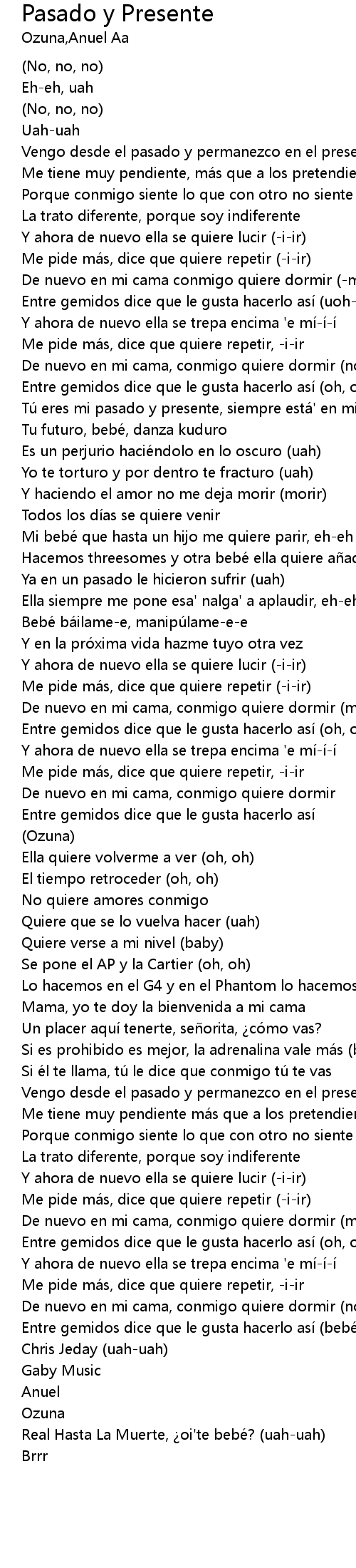 | [00:59.086] | Tú eres mi pasado y presente, siempre está' en mi mente (eh-eh) |