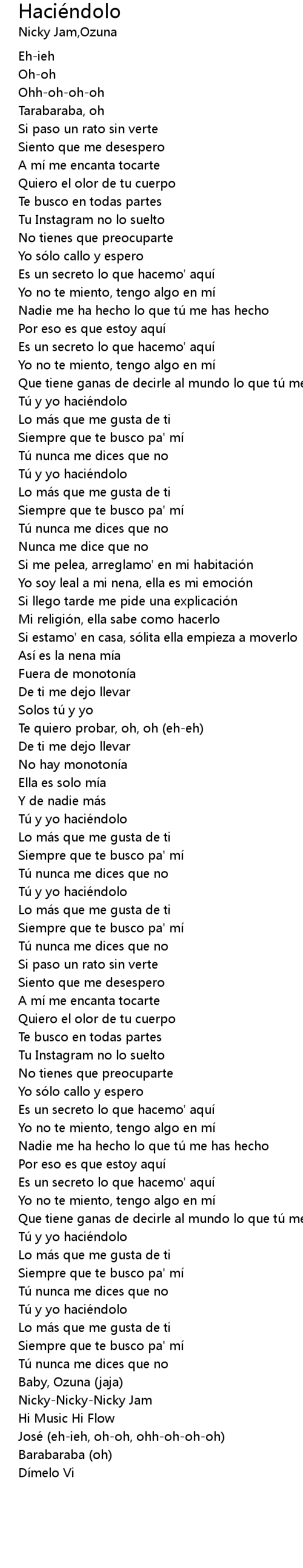 | [02:59.405] | Que tiene ganas de decirle al mundo lo que tú me haces sentir jaja |