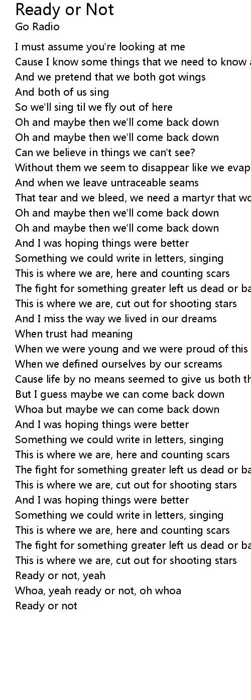 Whoa, yeah ready or not, oh whoa |