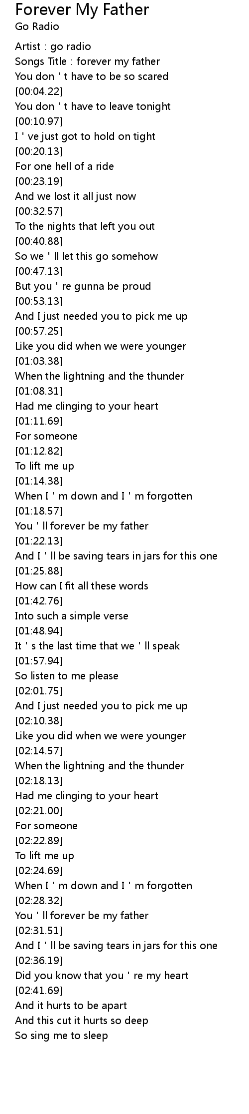 | [01:19.82] | You'll forever be my father |