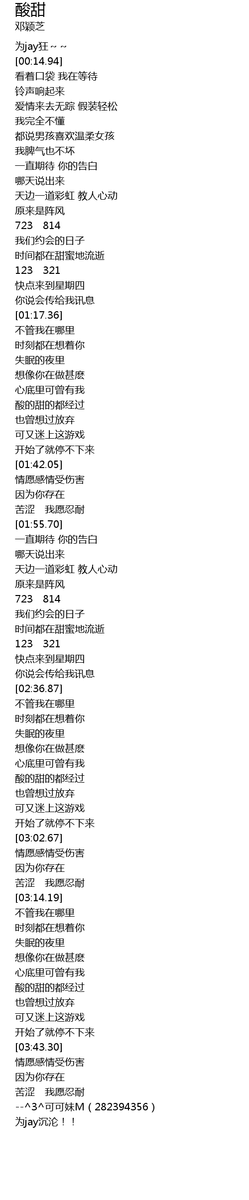 | [03:51.95] | --^3^可可妹M(282394356) |