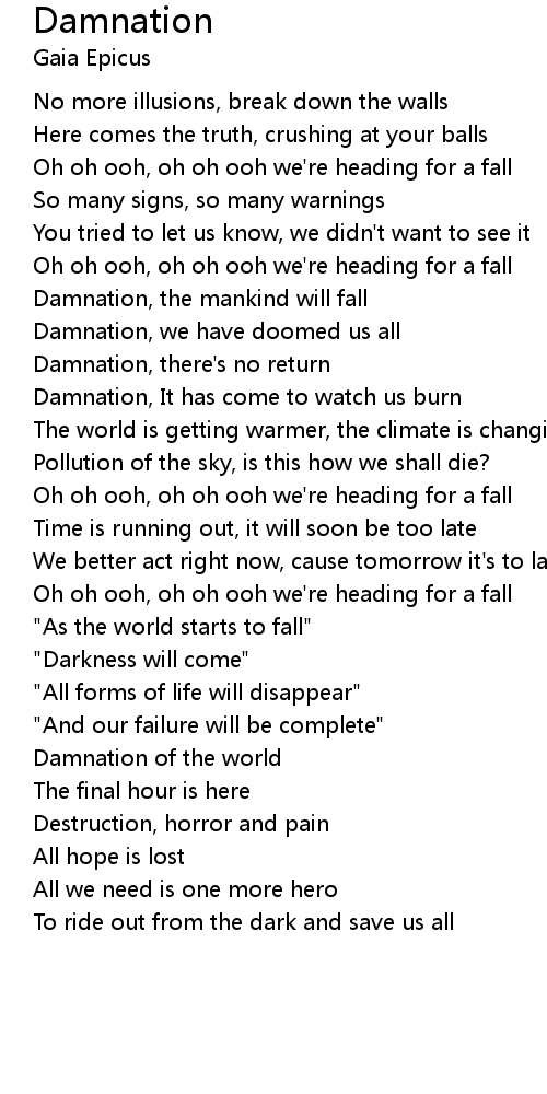 Oh oh ooh, oh oh ooh we're heading for a fall |