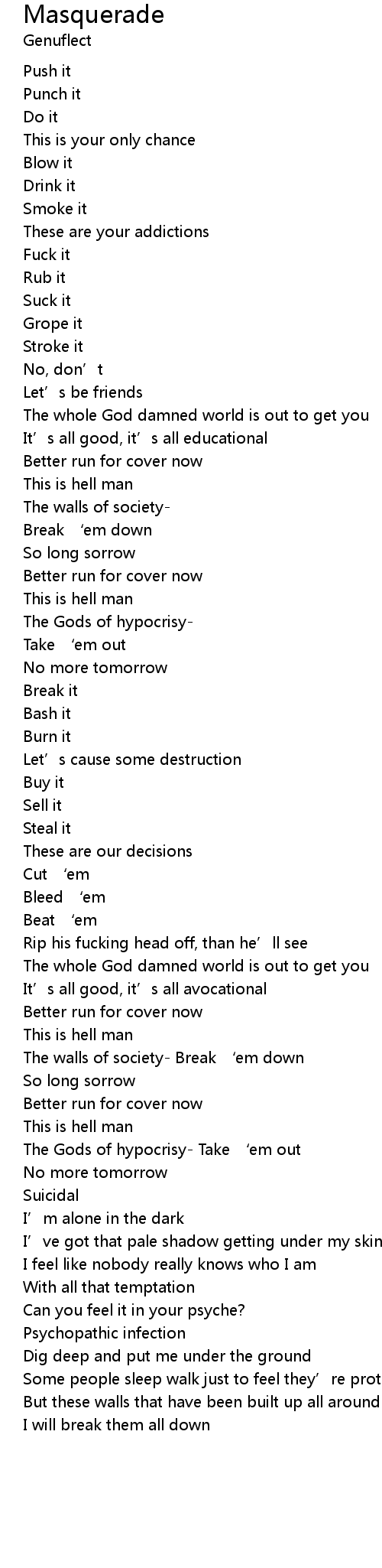 | The walls of society Break ' em down | |