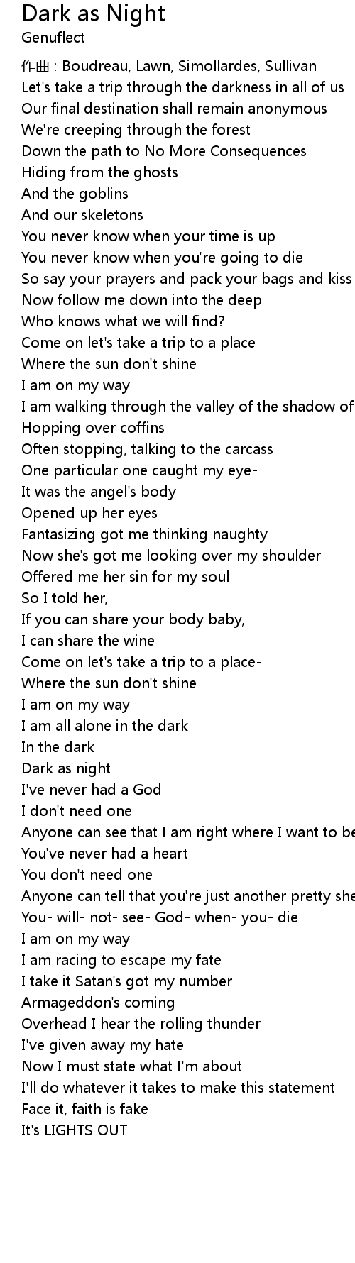 | Song | Dark as Night |