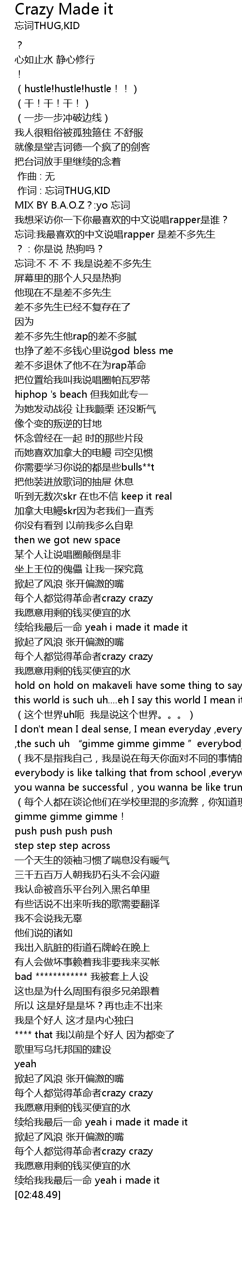 | [02:31.94] | xù gěi wǒ zuì hòu yī mìng yeah i made it made it |