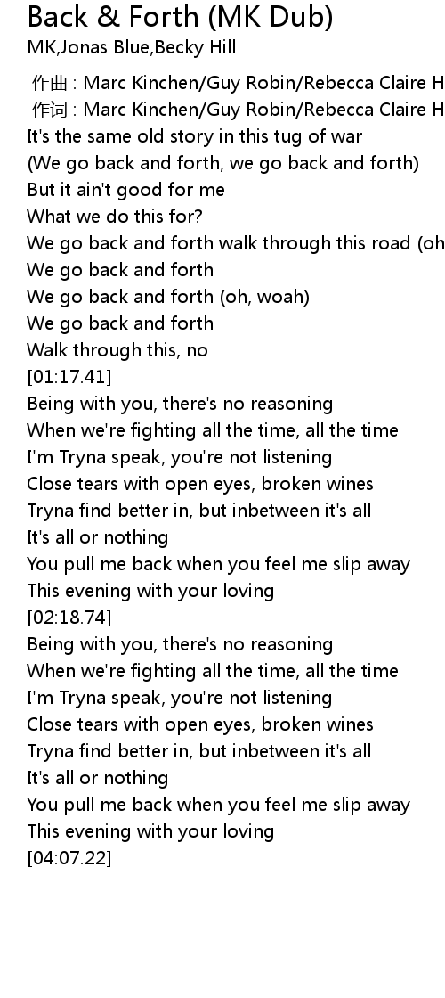 | [00:50.56] | (We go back and forth, we go back and forth) |