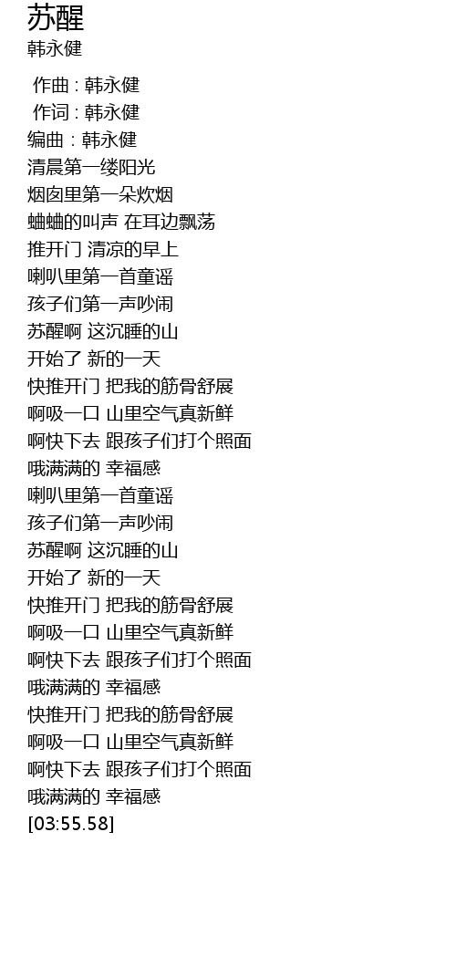 | [03:06.61] | 啊吸一口 山里空气真新鲜 |
