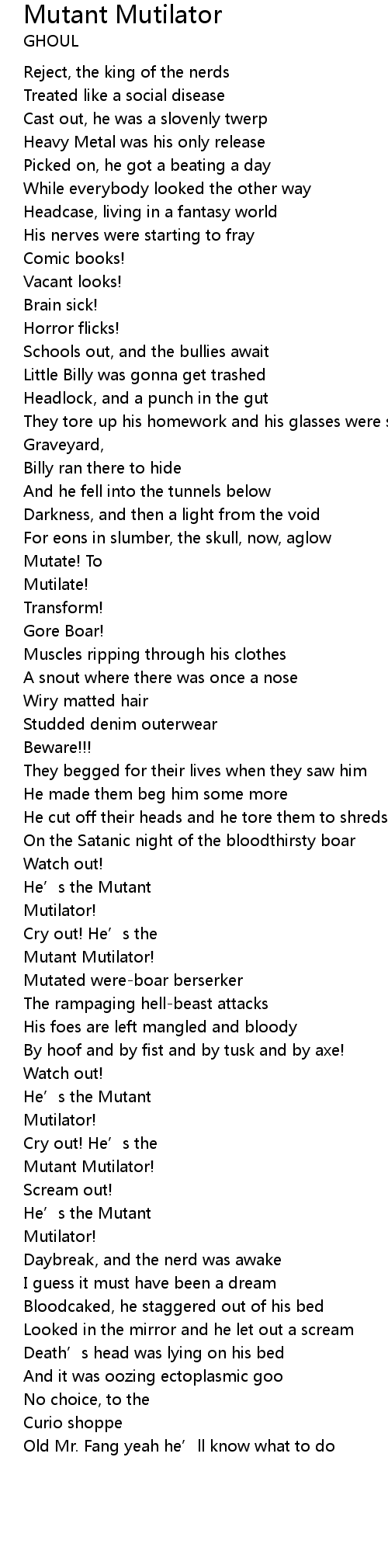 | Song | Mutant Mutilator |