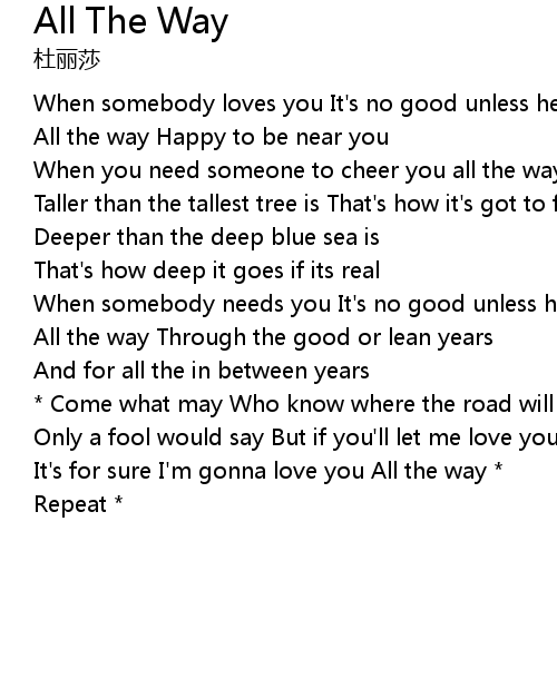 | It's for sure I'm gonna love you All the way * | |
