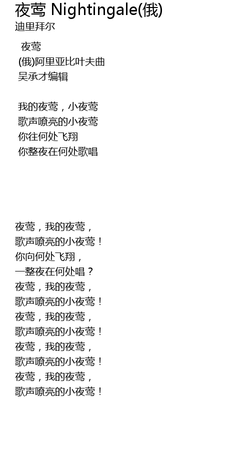 | Song | 夜莺 Nightingale(俄) |