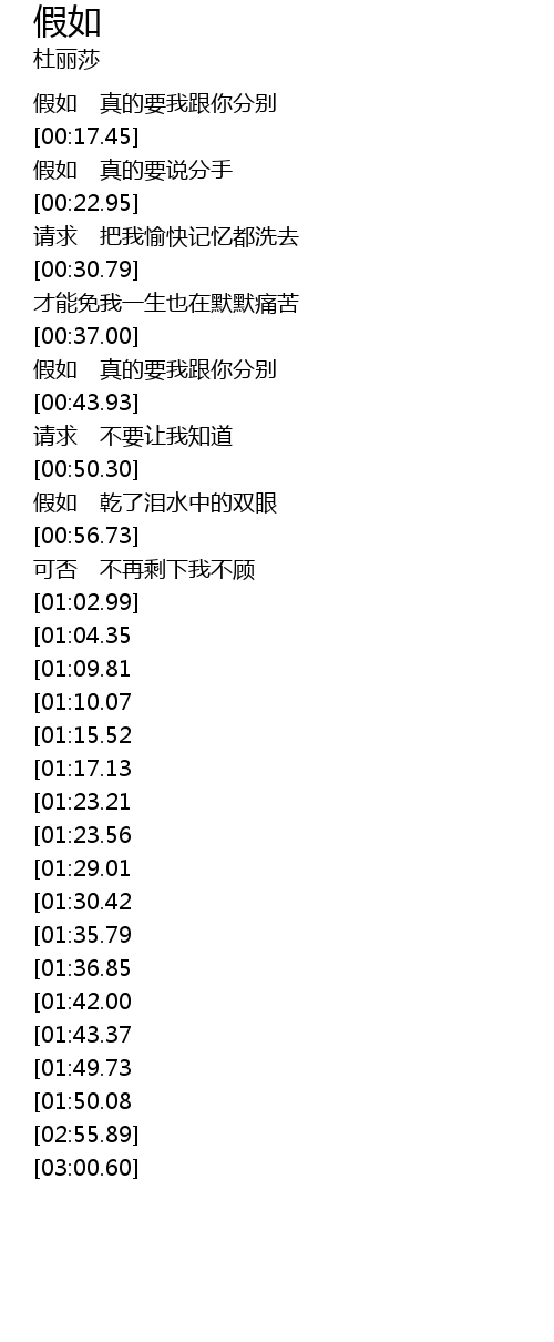 | [00:17.65] | 假如 真的要说分手 |