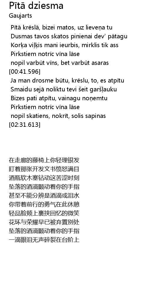 | [00:38.159] | Pirkstiem notrīc vīna lāse |