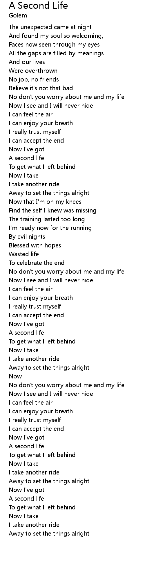 No don't you worry about me and my life |