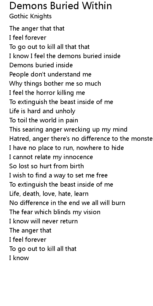 I know I feel the demons buried inside |