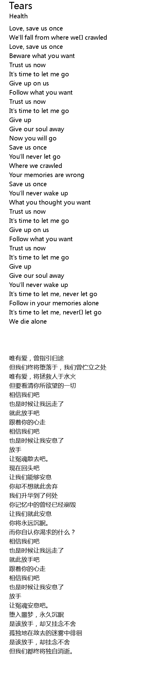 | Song | Tears |