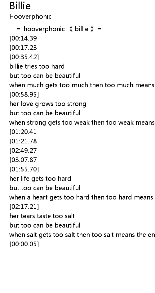| [00:01.92] | -= hooverphonic 《 billie 》=- |