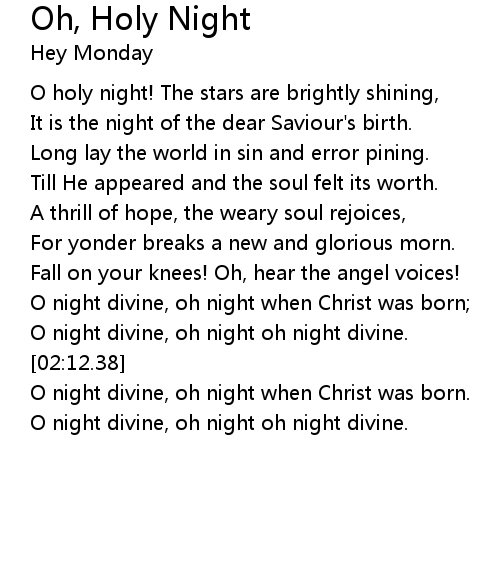 O holy night! The stars are brightly shining, |