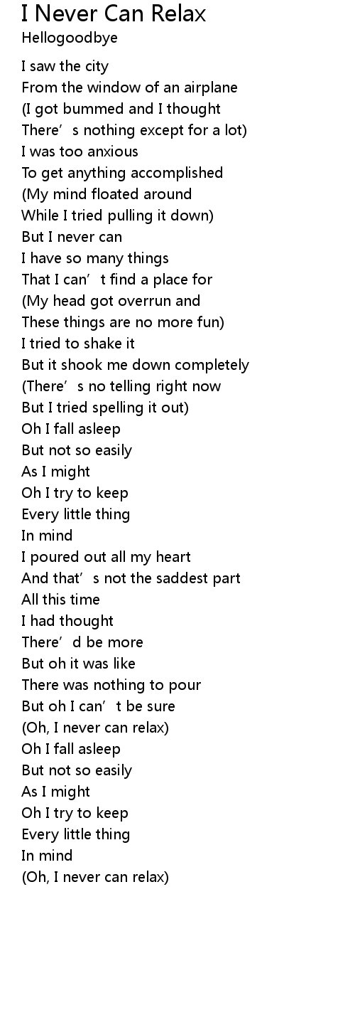 | Oh, I never can relax | |