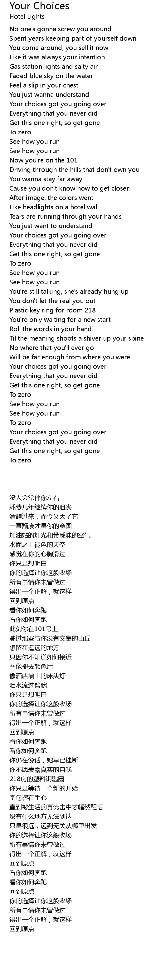 Your choices got you going over |