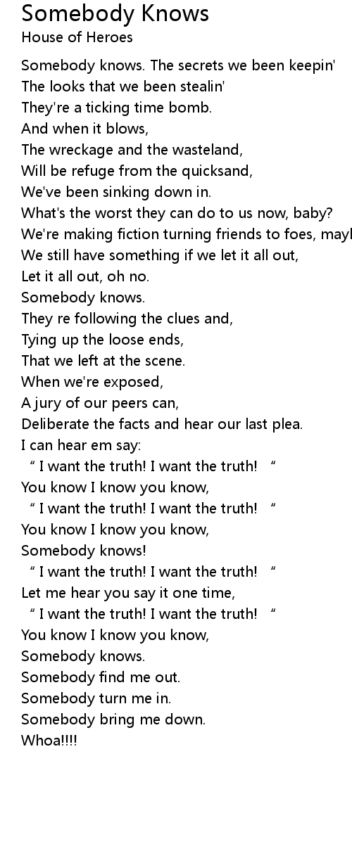 | Somebody knows. The secrets we been keepin' | |