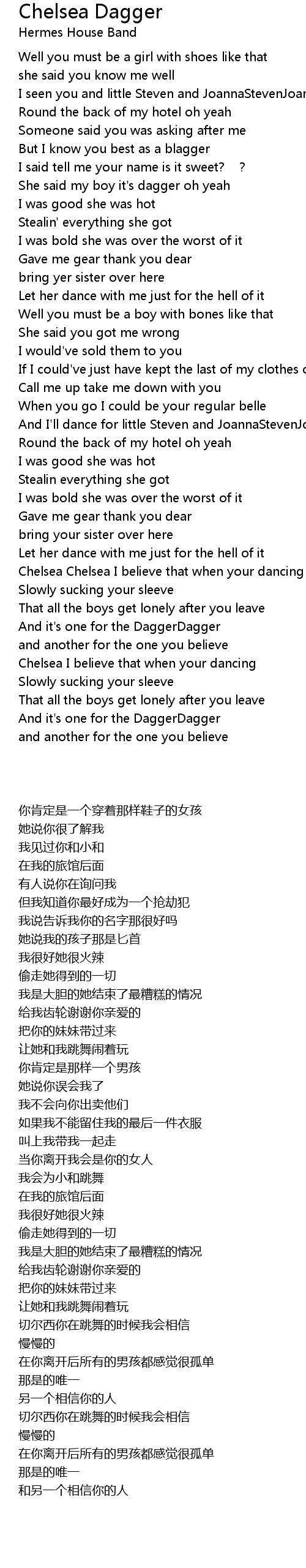 | [00:56.740] | She said my boy it' s dagger oh yeah |