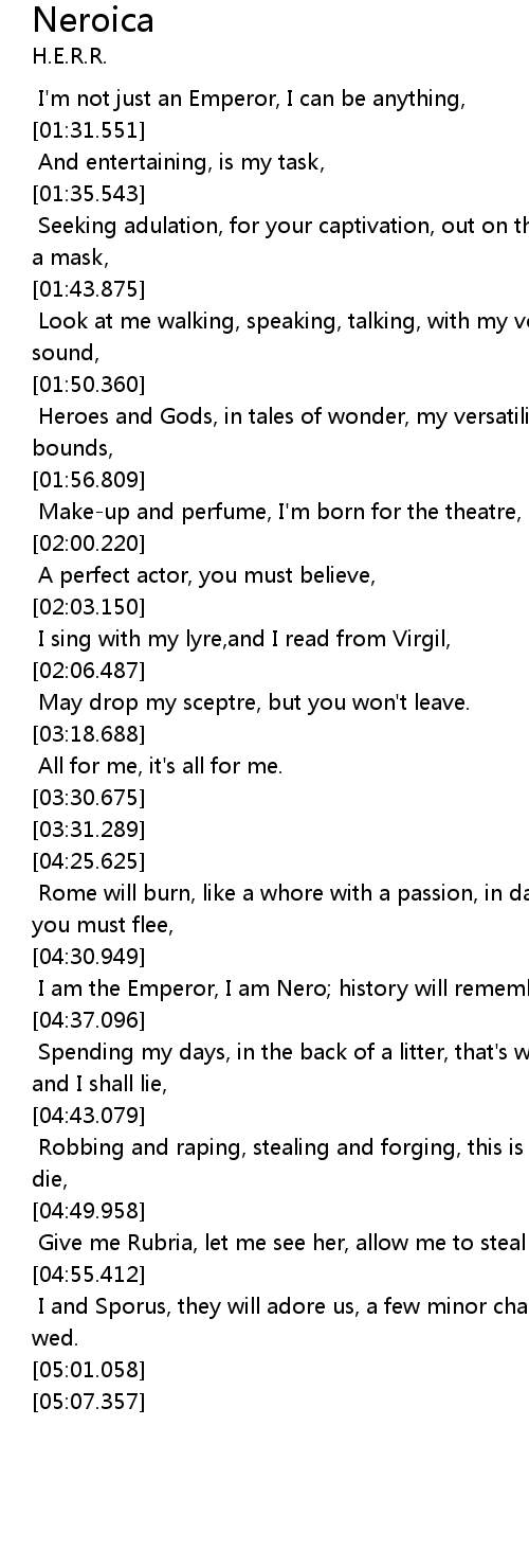 I am the Emperor, I am Nero; history will remember me, |