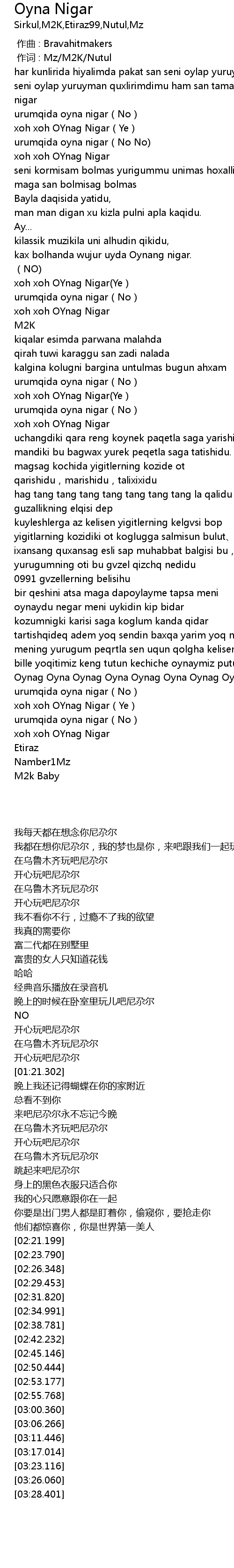 | [00:30.867] | urumqida oyna nigar(No No) |