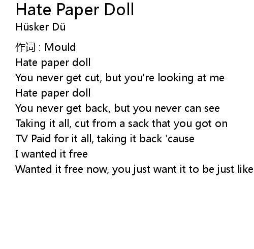 | Song | Hate Paper Doll |