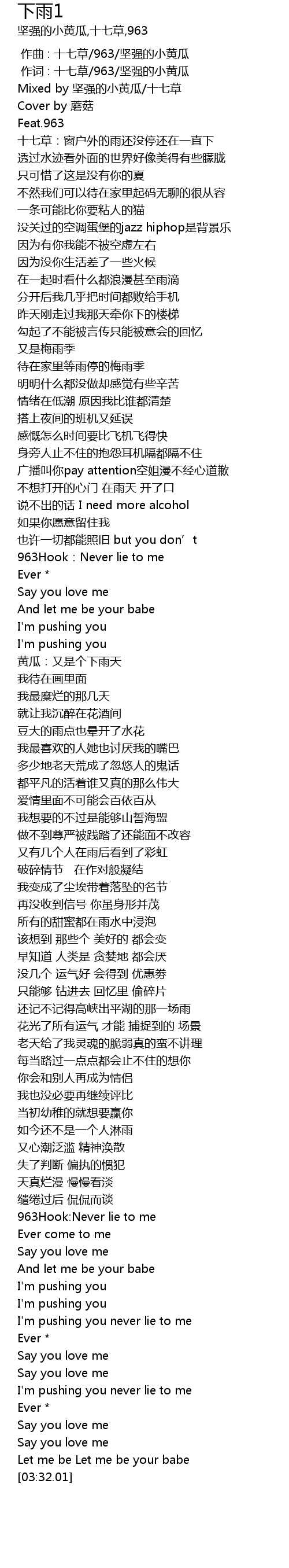 | [00:01.000] | 作词 : 十七草/963/坚强的小黄瓜 |