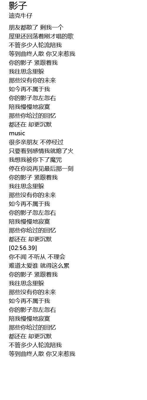 | [00:55.98] | 你的影子 紧跟着我 |