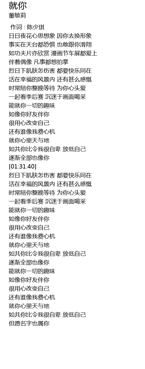| [01:40.00] | 烈日下肌肤怎伤害 都要快乐同在 |