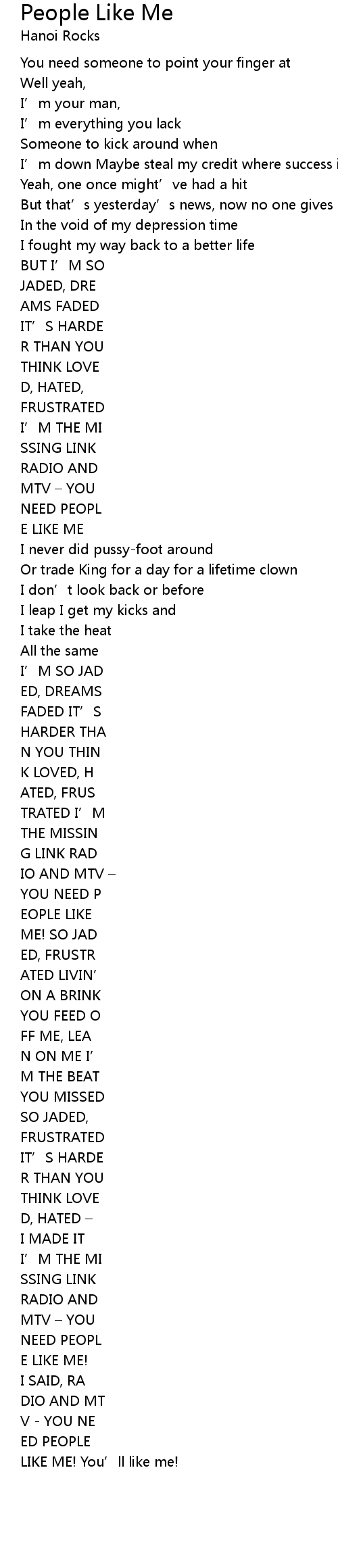 | Song | People Like Me |