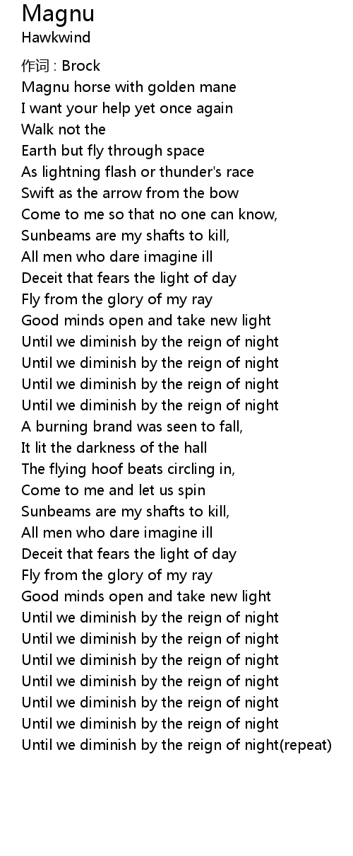 | Until we diminish by the reign of night(repeat) |