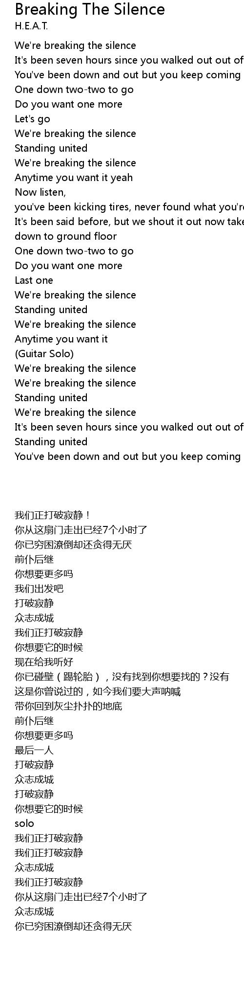 We're breaking the silence |
