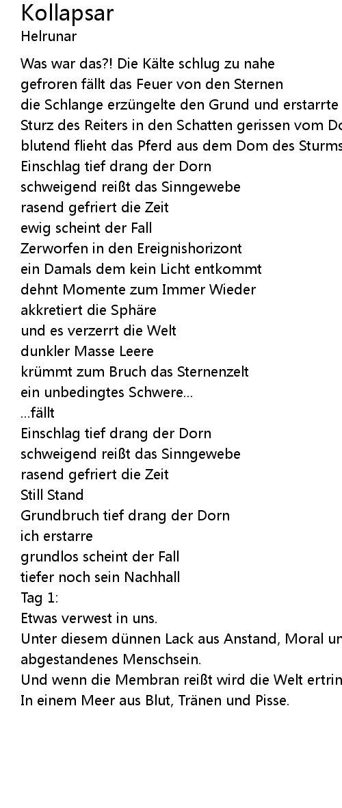 | Und wenn die Membran reißt wird die Welt ertrinken. | |