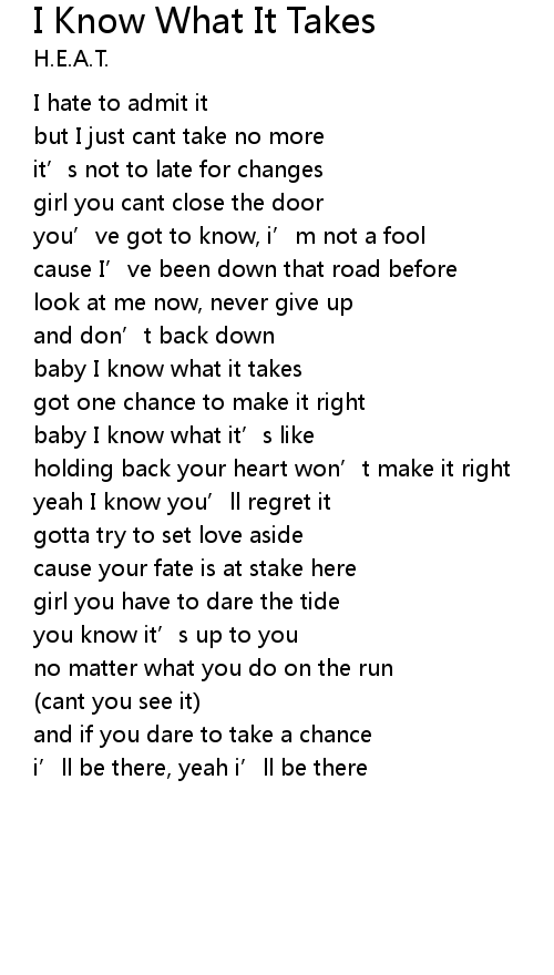 | baby I know what it takes | |