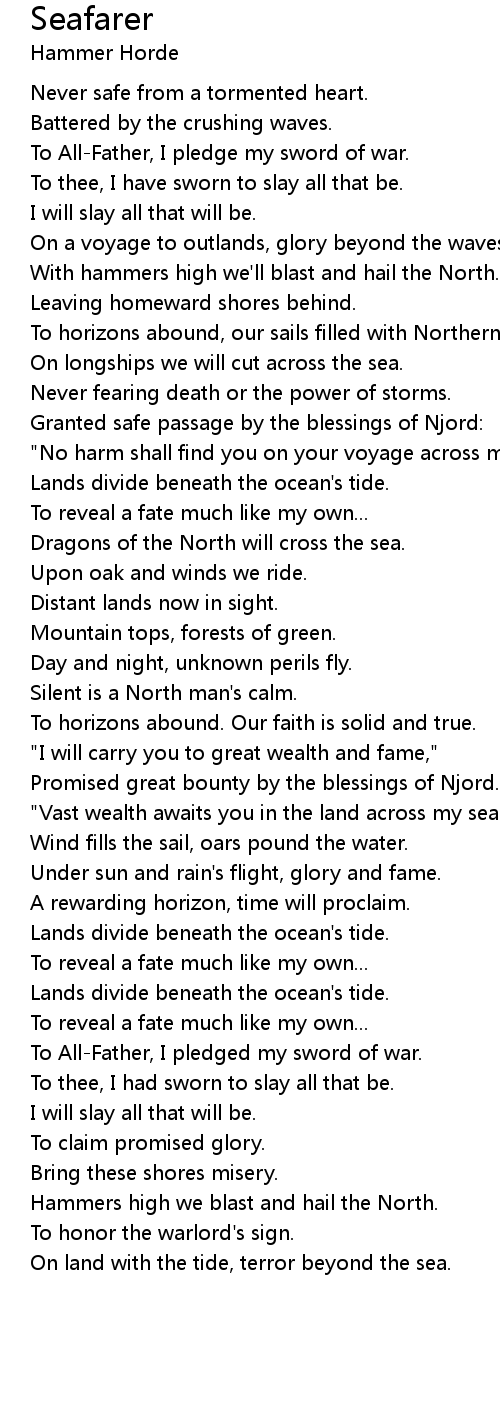 Never fearing death or the power of storms. |
