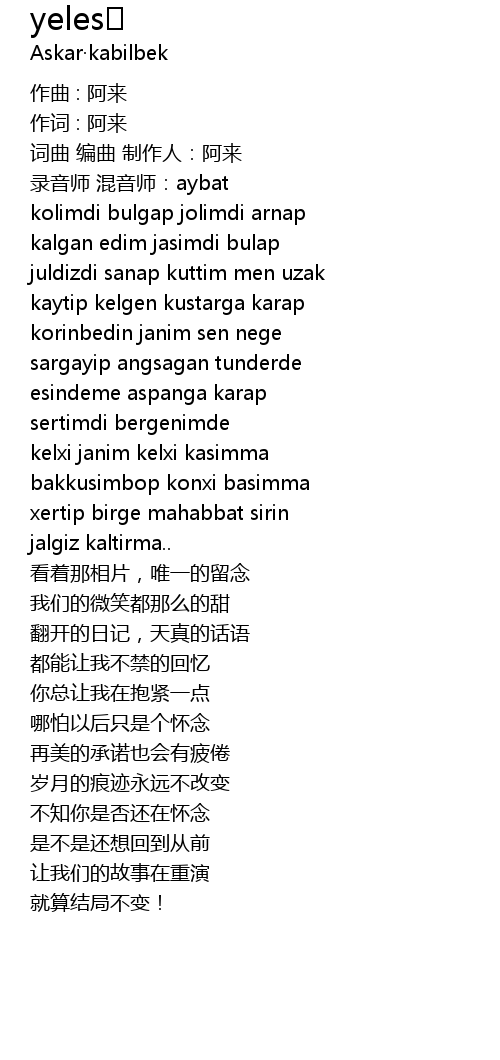 | 词曲 编曲 制作人:阿来 | |
