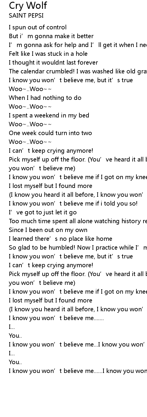 | [03:23.15] | I know you won’t believe me...I know you won’t believe me..... |