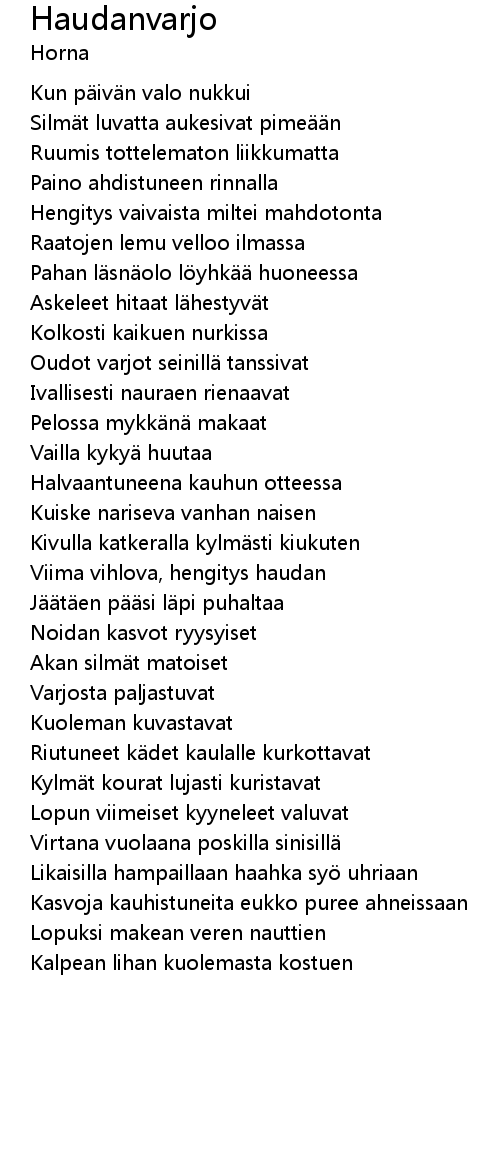 | Song | Haudanvarjo |
