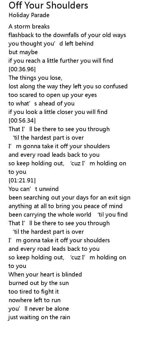 | [01:58.41] | I' m gonna take it off your shoulders |