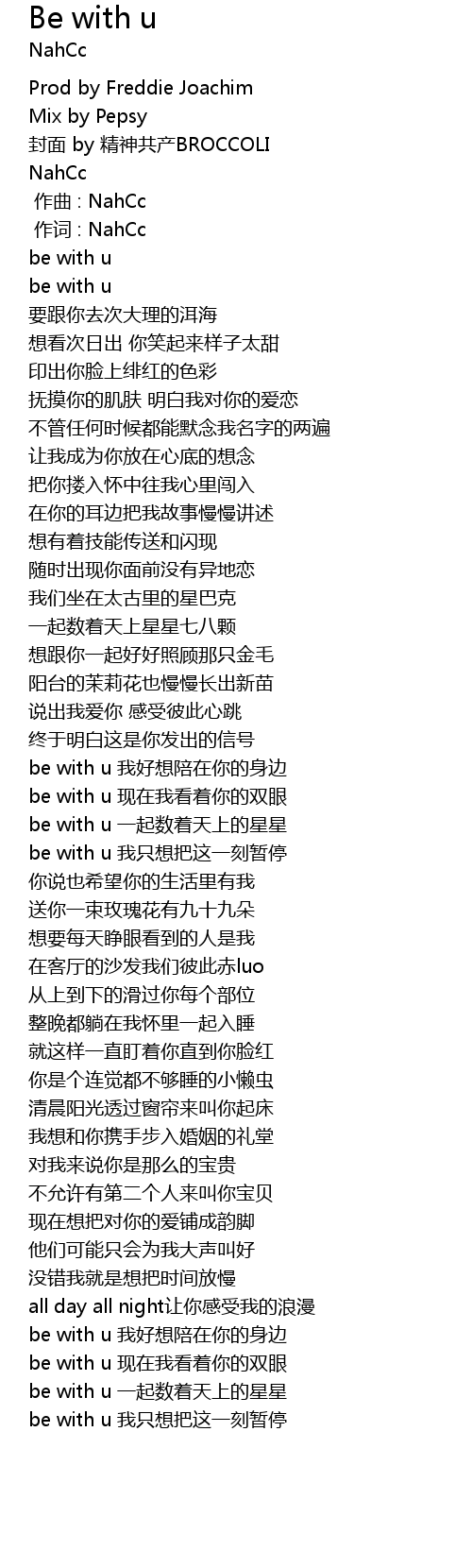 | [01:00.72] | be with u 我好想陪在你的身边 |