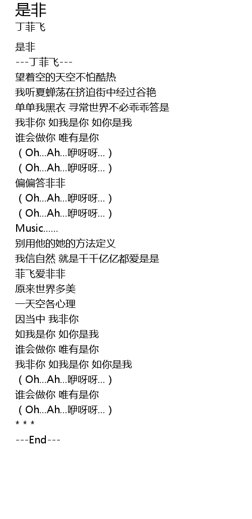 | [00:42.55] | 我非你 如我是你 如你是我 |